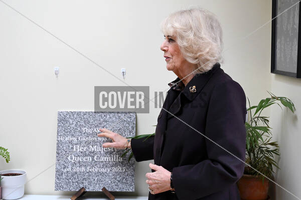 Caption: Queen Camilla unveils a plaque to commemorate the opening of the new Healing Garden during a visit to the Asian Women's Resource Centre (AWRC) in north London, a charity dedicated to providing support for women and children from black and minority ethnic (BME) backgrounds who have been affected by domestic abuse, forced marriage, honour-based or faith-based abuse.